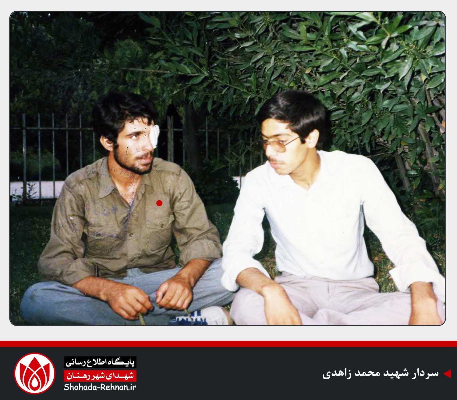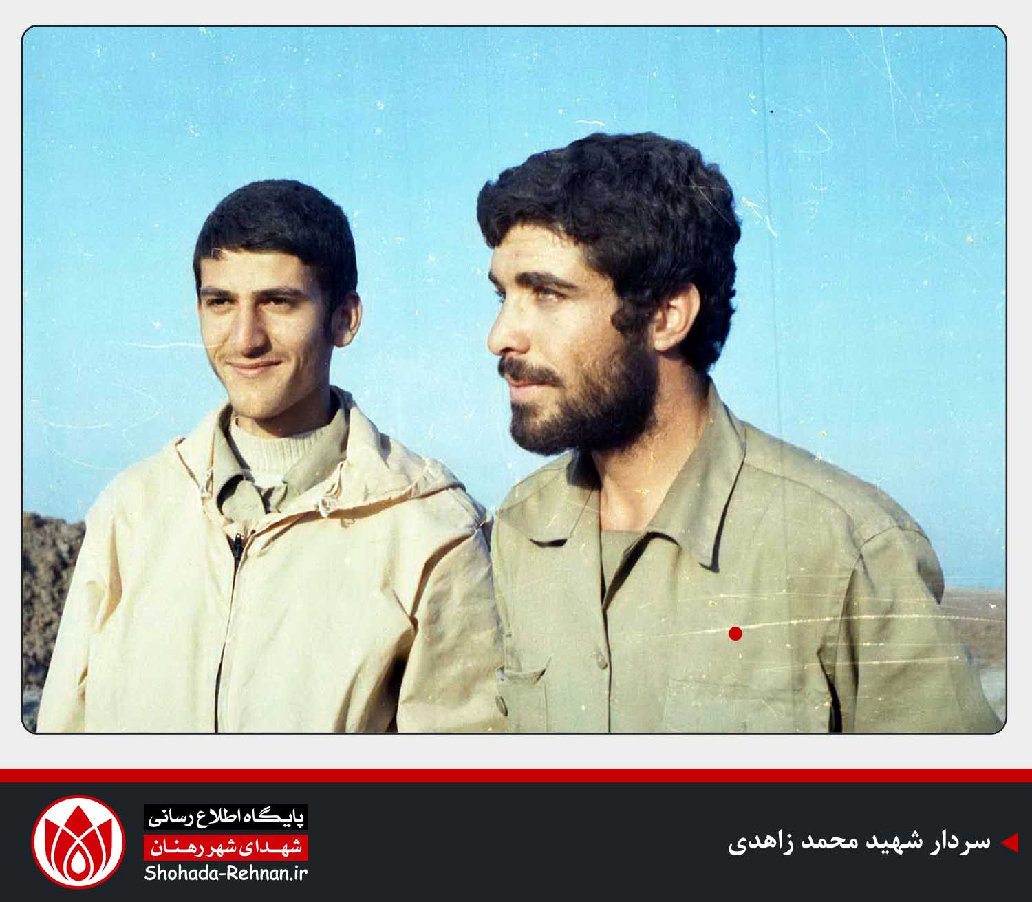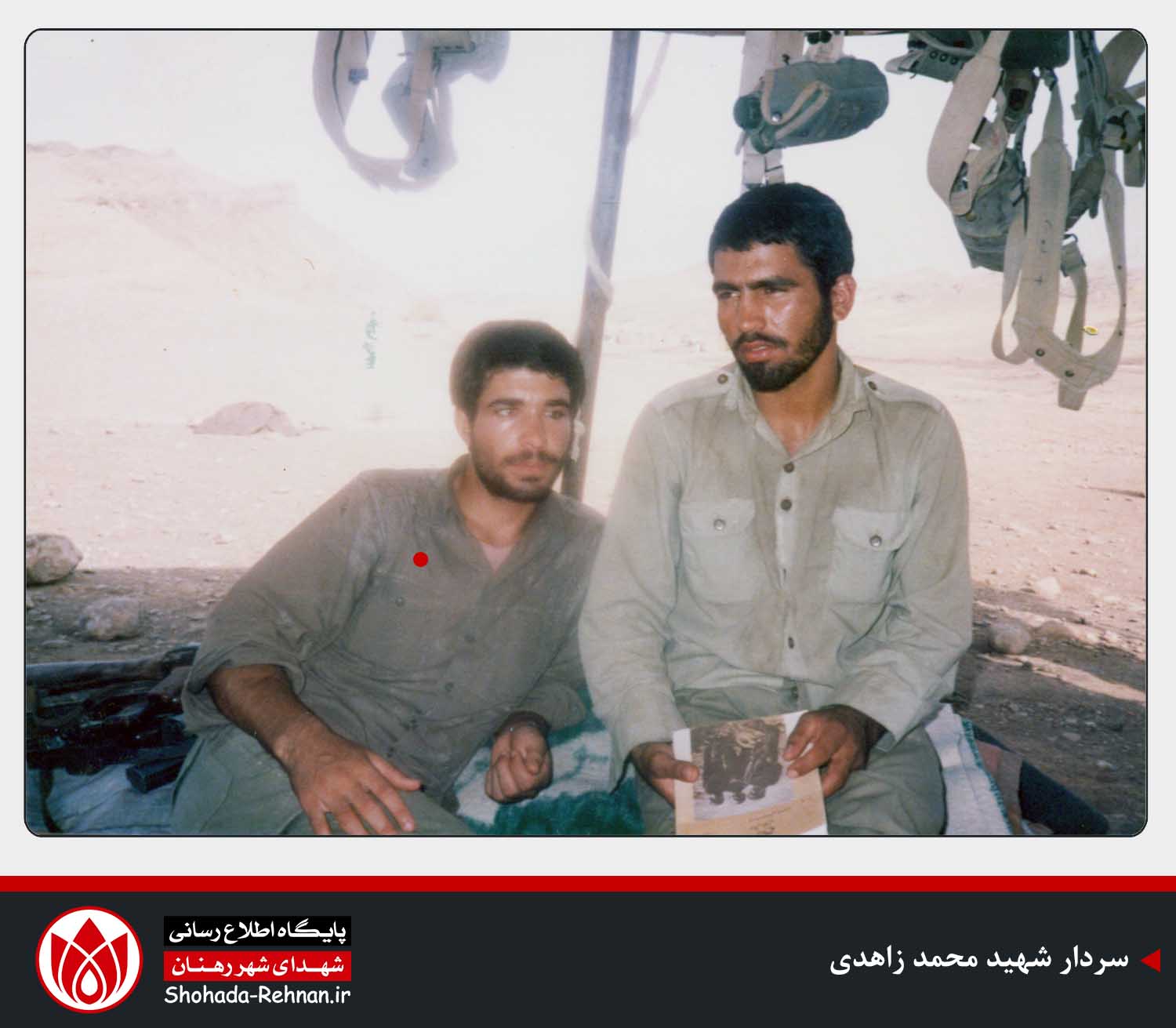 ایشان قبل از شهادت به خواهرش، زهرا زاهدی، قاب عکسی می دهد و سفارش میکند که بعد از شهادتش آن را بر مزارش نصب کنند.