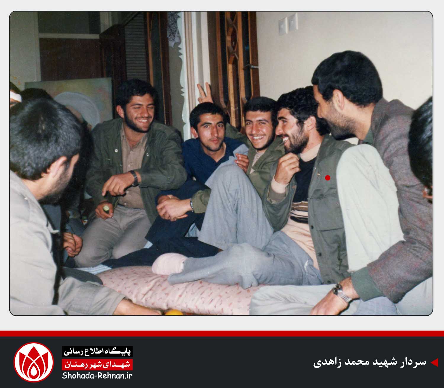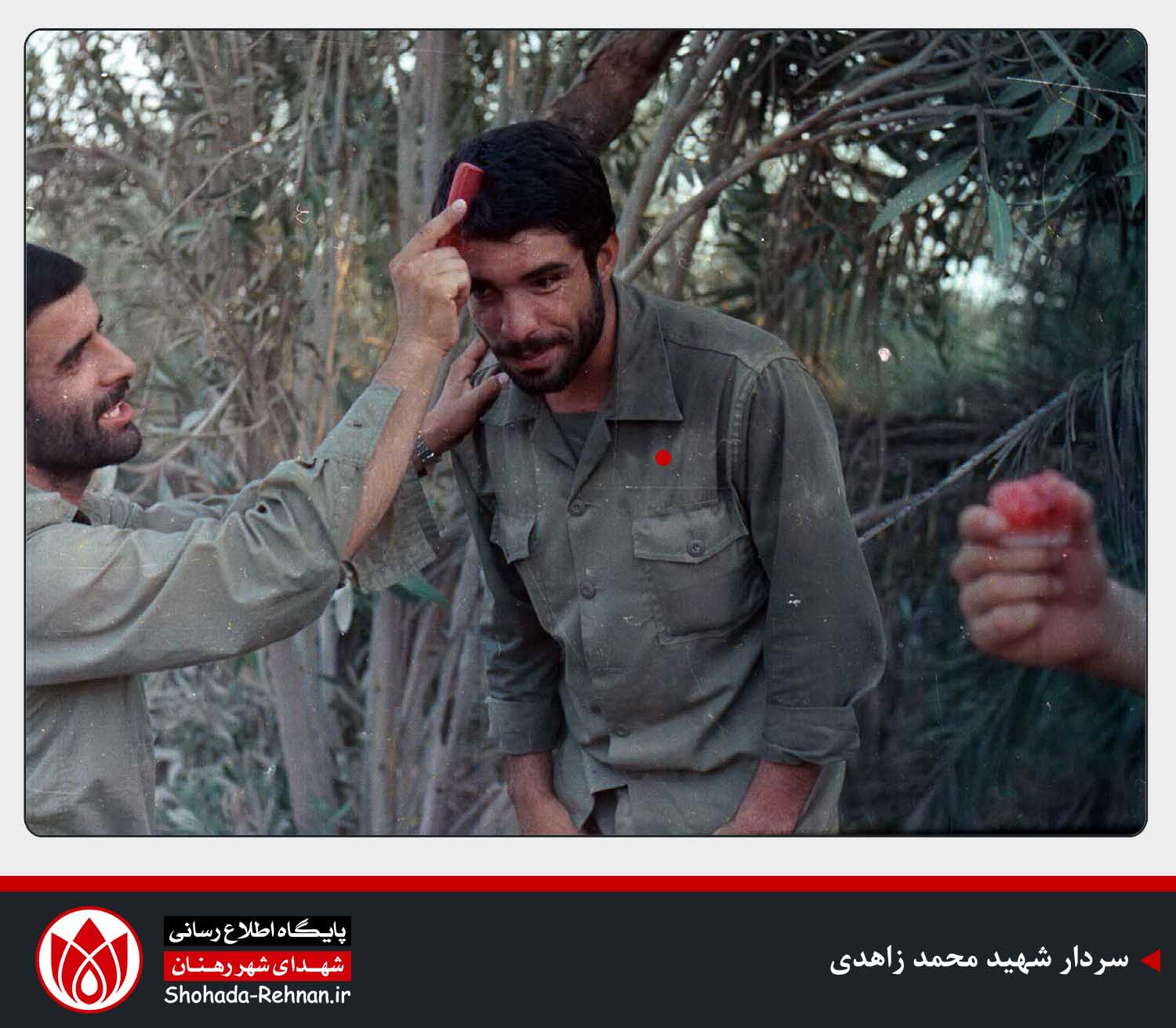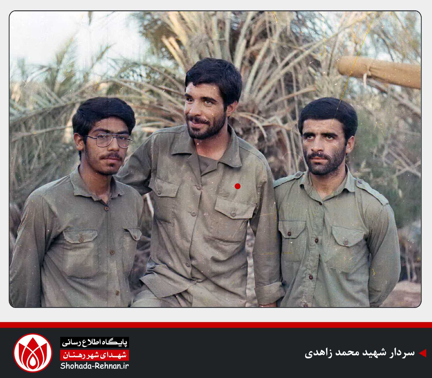 ایشان قبل از شهادت به خواهرش، زهرا زاهدی، قاب عکسی می دهد و سفارش میکند که بعد از شهادتش آن را بر مزارش نصب کنند.