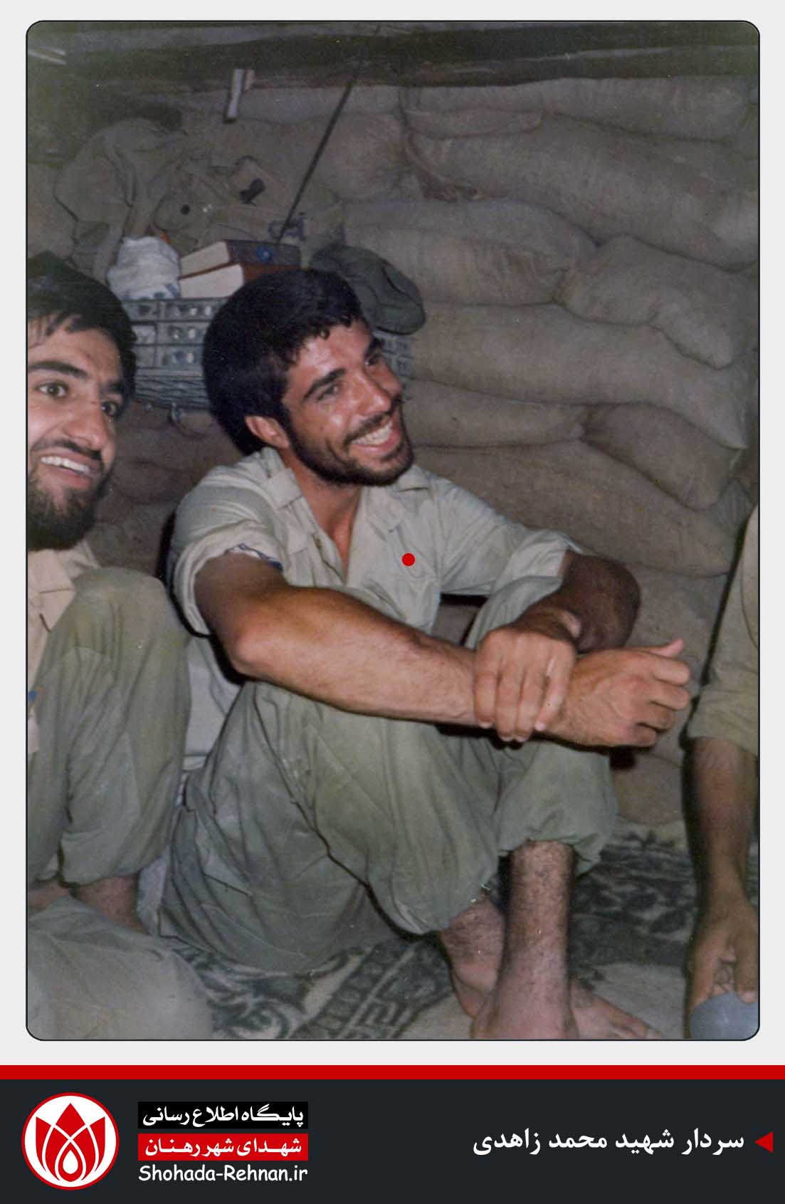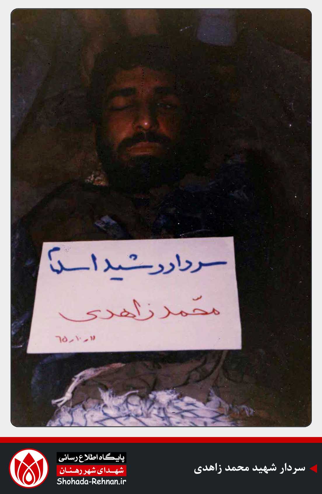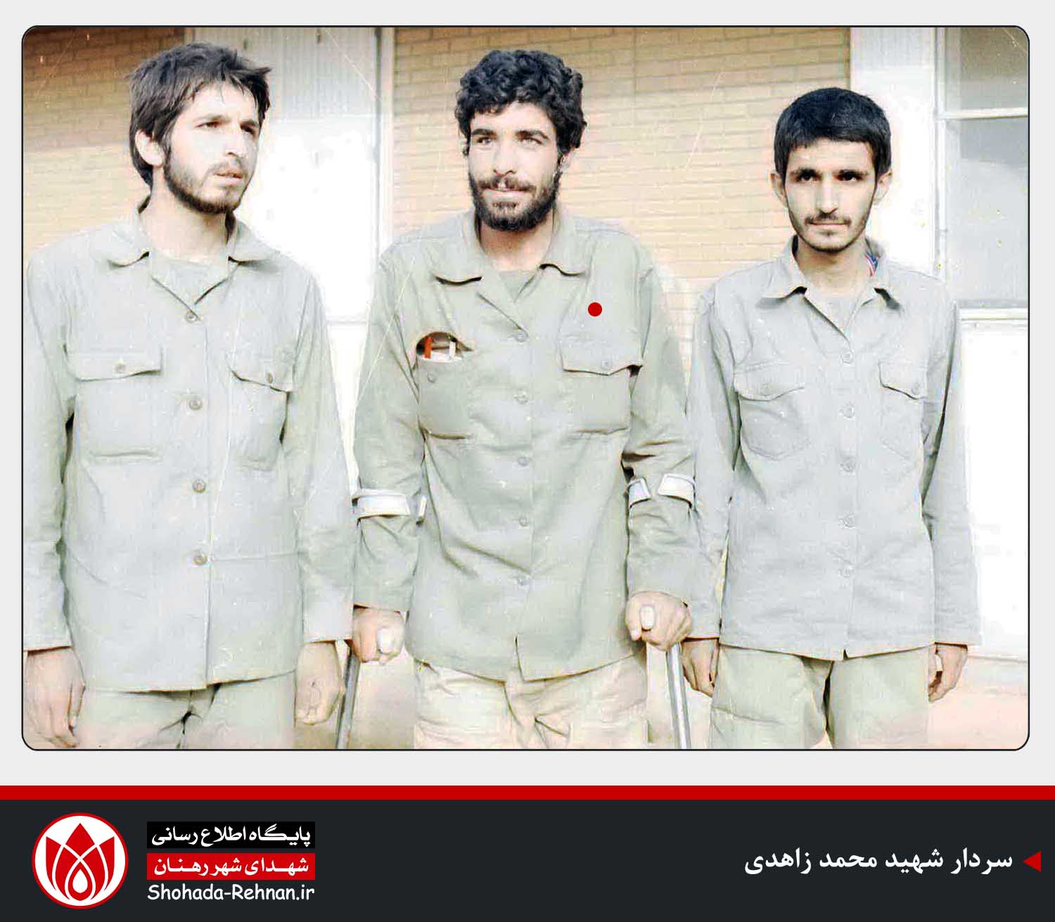 خواهرش، زهرا زاهدی، در این باره میگوید : « یادم است یک بار محمد از ناحیه پا مجروح شده بود. پدرم برای عیادت او به بیمارستان رفت . بعد که پدرم از بیمارستان آمد پاکتی دستش بود . آن پاکت را کنار ایوان گذاشت. من فکر کردم میوه یا چیز دیگری خریده است. رفتم و در پاکت را گشود، دیدم پارچه است. آن را باز کردن دیدم، انگشتان محمد است . از شدت ناراحتی به خود میپیچیدم و گریه میکردم . بعد از مدتی از این واقعه محمد از بیمارستان آمد. انگشتان قطع شده اش را برداشت و غسل داد و آن ها را در قبرستان دفن نمود. »